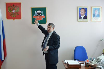 Локомотив, кирпич и шестеренка, объединенные в одном рисунке, станут символом села Возжаевка Белогорского района. Здесь разработали эскиз сельской символики, который должна утвердить геральдическая комиссия. Пока же герб находится только в кабинете главы района.