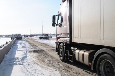 Накануне комиссия, осматривавшая переправу, разрешила движение по дороге, правда с ограничением до 30 тонн. Ограничение будет действовать неделю, после чего переправа должна выйти на запланированную мощность до 40 тонн — около 120 грузовых машин в день. По проекту мост способен выдержать нагрузку. Переправа состоит из 10 барж: пять поставили с российской стороны, еще пять — с китайской. Движение на понтонной переправе одностороннее — машины будут отправлять партиями.