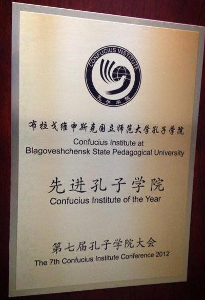 Институт Конфуция Благовещенского педуниверситета стал одним из лучших в мире по итогам 2012 года. Такой награды удостоены 26 Институтов Конфуция из более чем 300 открытых по всему миру. Памятный диплом ректор БГПУ Юрий Сергиенко получил из рук председателя КНР Си Цзиньпина.