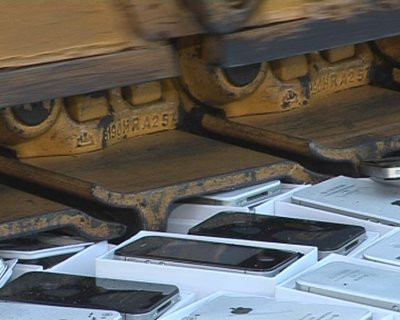 Сегодня, 11 января, амурские полицейские уничтожили партию контрафактных смартфонов. Под гусеницами бульдозера погибли 127 Apple iPhone 4 и Apple iPhone 4S. Телефоны незаконно были ввезены на территорию России жителем Китая.