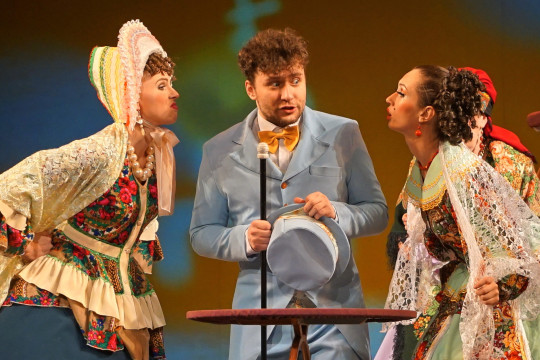 Стереотипы, воплощающие представления иностранцев о загадочной и безбашенной России, встречаются через кадр. Здесь есть фантасмагорический «танец с печатями», который исполняет армия чиновников в присутственном месте. Есть словно сошедшие с картин Венецианова нарядные крестьяне на покосе. Есть чересчур безмятежные пейзажи, демонстрирующие русскую ширь. Есть бородатые мужики в косоворотках и вездесущие шпики тайного отделения. Есть полный театр с блистающими ложами. Есть грязные трактиры с половыми и чаркой водки. Спасибо, что обошлись без царя, медведя, цыган и балалайки.