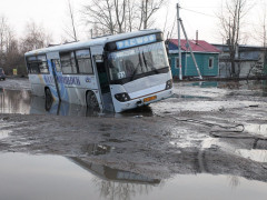 Сегодня в Благовещенске пассажирский автобус № 23 провалился в лужу. Авария произошла на пересечении улиц Театральной — Дрогашевского.