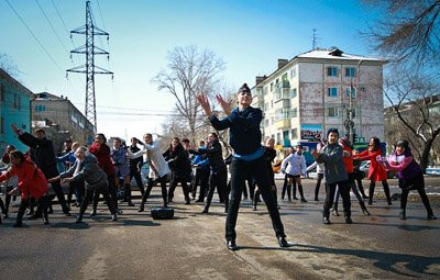 В амурской столице сегодня прошел необычный флэшмоб. 60 школьников разных возрастов исполнили танец на проезжей части в районе Амурской — Шимановского.
