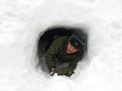 «На практических занятиях будущие офицеры отрабатывали навыки выживания при сходе лавины, — рассказал АП заместитель начальника ДВВКУ по учебной части Владимир Рукосуев. — При помощи специальных приборов, лавинных щупов и собак они искали людей. Глубина снега в этих местах составляет более двух метров. Каждый курсант в процессе обучения почувствовал себя в роли извлекаемого из-под снега, как говорится, побывал под лавиной – по очереди их закапывали в снег на 10 минут».