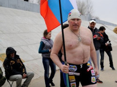 Амурские любители плавания в холодной воде готовятся к покорению Берингова пролива. Накануне спортсмены федерации «Аквайс-спорт» приняли участие в 68-километровом заплыве по Амуру. Он посвящен очередной годовщине победы советских войск над фашисткой Германией.