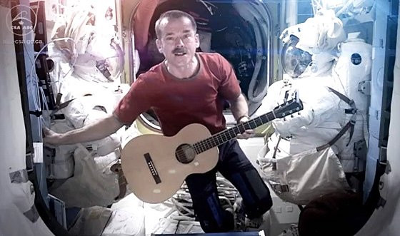 Любительский клип Хадфилда был снят на песню Дэвида Боуи «Странный случай в космосе» (Space Oddity), говорится в издании. В песне 1969 года выпуска поется о вымышленном персонаже — майоре Томе, который погибает в космосе. Крис немного обновил содержание песни — добавил упоминание о корабле «Союз», на котором экипаж вернулся на Землю. Клип длится 5,5 минуты. В нем астронавт, который сам исполняет свой музыкальный хит, парит в невесомости, передвигаясь по всему кораблю, играя при этом на гитаре.