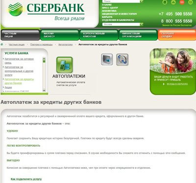 Сбербанк предлагает «Автоплатеж» для погашения кредита чужих банков