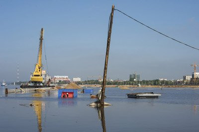 По их словам, затопило только ту часть территории, которую не успели намыть полностью.