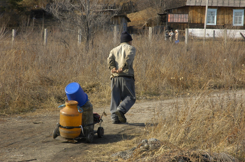 По словам селян, в последние дни начали привозить воду в цистерне. Бочка, в которую вмещается 200 литров, приходит раз в день — на семью выходит по два ведра.