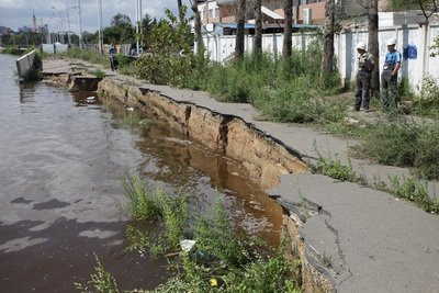 Как отмечают в пресс-службе городской администрации, участок, где рухнула часть набережной, находится на огороженной забором территории, поэтому опасности для пешеходов нет.