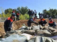 Вода в реке Зея в районе Благовещенска стабильно идет на спад, поэтому в областном центре начали разбирать песчаные дамбы. Сегодня за работами проследил глава МЧС России Владимир Пучков, прибывший в область с однодневным визитом.