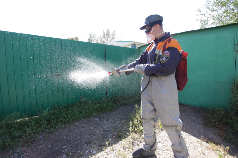 81 килограмм сульфохлорантина использовали вчера для дезинфекции территорий Благовещенска, которые подтопило во время паводка. Также жителям выдали 312 дезпакетов для самостоятельного обеззараживания придомовых территорий.