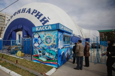 Надувной купол дельфинария установили на площади возле Общественно-культурного цирка, на монтаж необходимого оборудования ушел почти месяц. Из труппы московского передвижного аквакомплекса в амурскую столицу приедут два черноморских дельфина и пара морских котиков. Артисты прибудут в город ближе к началу представлений.