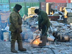 22 самодельных самогонных аппарата, изъятых во время областной операции «Алкоголь», уничтожили сегодня в Благовещенске. Для начала их разрезали на мелкие кусочки, а потом для верности пустили под пресс.
