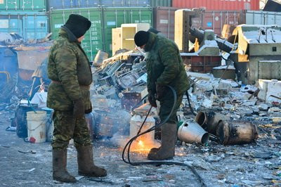 22 самодельных самогонных аппарата, изъятых во время областной операции «Алкоголь», уничтожили сегодня в Благовещенске. Для начала их разрезали на мелкие кусочки, а потом для верности пустили под пресс.