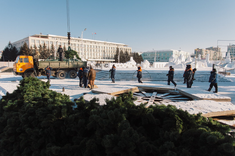 Сегодня, 3 февраля, в амурской столице разобрали новогоднюю елку на площади Ленина. Сначала сотрудники предприятия «Горсвет» сняли гирлянду, а затем к разбору конструкции приступили работники ГСТК. К обеду демонтаж новогодней красавицы был закончен.