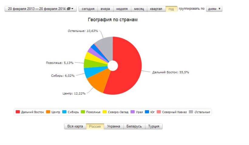 Сайт «Амурской правды», по данным Яндекс-метрики, практически равно популярен как у мужчин, так и у женщин: 47 процентов против 53%. Самая внушительная возрастная группа — от 25 до 34 лет (смотри диаграммы в фото). Основной читатель www.ampravda.ru — житель России. Большая часть посетителей заходит на наш сайт из Приамурья. Однако нас любят и на западе страны, и в Сибири.