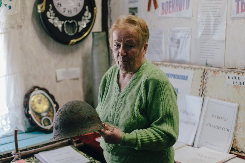 Здешним музеем бессменно заведует учитель химии и ОБЖ Раиса Колесниченко, основавшая его около 20 лет назад. Музей — небольшая комнатка, приютившаяся на первом этаже школы, увешанная ручной вышивкой и заставленная предметами старины. Тут и разнокалиберные советские деньги, и прялка начала 20-го века, и маслобойка, и веретено, и даже советская каска времен войны с Японией. Эту каску Раиса Петровна в прямом смысле откопала на сопке вместе с родственниками, когда гостила у них на Курилах. Остальные экспонаты по большей части подарили сами сельчане. «Я до сих пор коммунистка!» — признается Раиса Колесниченко и достает из закромов малой родины коммунистические сокровища: почти полное собрание сочинений Ленина и стопки пыльных алых флагов и знамен. Часть из них она сохранила после распада совхоза — и сейчас это все, что напоминает о некогда процветавшем здесь хозяйстве.