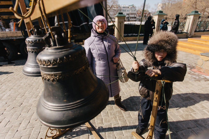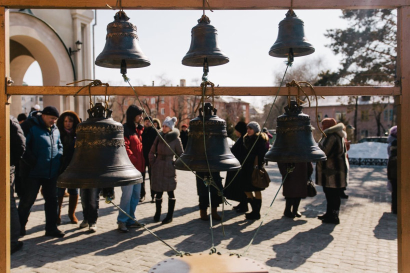 Сегодня благовещенцы слушали колокольный звон — в областной центр Приамурья прибыл колокольный крестный ход, следующий маршрутом Москва — Южно-Сахалинск. Амурская столица стала 16-м городом, где звонари Международного центра колокольного искусства провели мастер-класс и небольшой концерт для желающих. На площади перед кафедральным собором на Релочном звонари продемонстрировали разные виды колокольного звона, а в конце разрешили позвонить в колокола всем желающим. Торжественная доставка колоколов в Южно-Сахалинск через всю страну проходит впервые. После Благовещенска звонарей ждут в Биробиджане и Хабаровске. На мастер-классе присутствовал фотокорреспондент АП Сергей Лазовский.