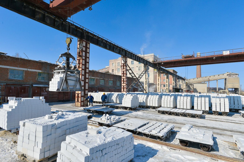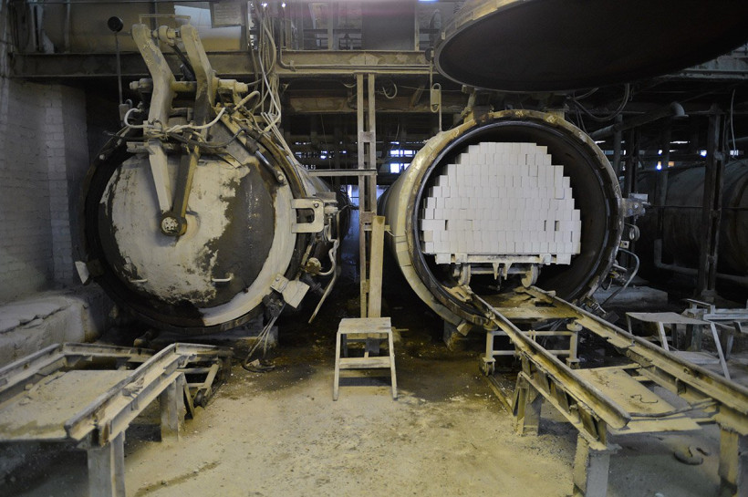 Напрессованный кирпич подается в специальный сосуд — автоклав. В нем под давлением 8—10 атмосфер при температуре от 180 до 200 градусов происходит химическая реакция: взаимодействие извести, песка и воды. При этом образуется гидросиликат кальция. После 9—11 часов в автоклаве кирпич считается готовым. Эта технология на сегодняшний день уникальна. В области немало производителей керамического кирпича: предприятия используют в производстве глину, кроме того, изготовление этого вида продукции возможно только в теплое время года.