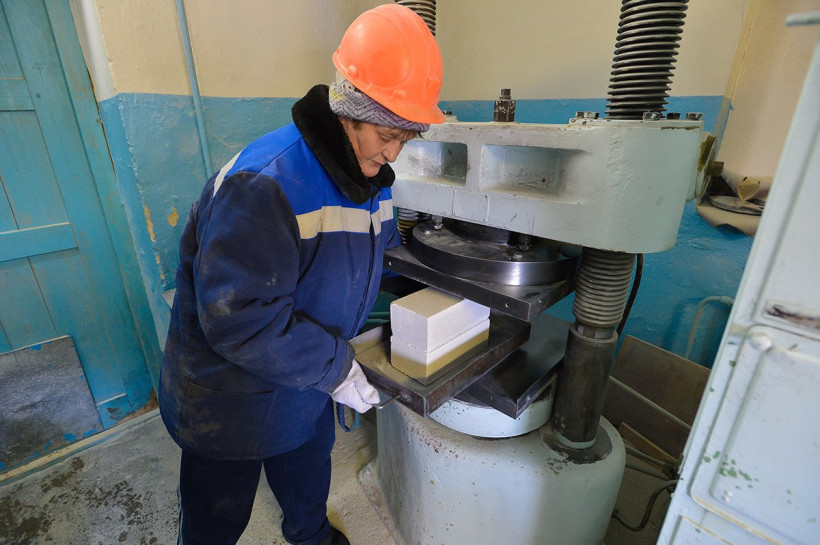 — Только одна массоподготовка занимает 5 этажей, — раскрывает тайны производства Сергей Абрамов. — Изготавливается кирпич из извести и песка. Песок мы добываем в карьере в Белогорье. А известь у нас привозная — из Челябинска. Дело в том, что это гораздо дешевле, чем производить ее в Амурской области: здесь известь изготавливается с помощью обжига мазутом. Это дорого и, к сожалению, не всегда качественно.