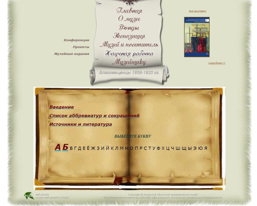 Сотрудники Амурского областного краеведческого музея составили и разместиили на сайте справочник-указатель «Благовещенцы. 1858 — 1920». В него вошли сведения об уроженцах и жителях досоветского Благовещенска всех сословных и профессиональных групп, учтенных в адрес-календарях и памятных книгах Приамурья.