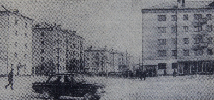 Город Белогорск — один из типичных небольших городов страны. Как и повсюду его характерные приметы — новостройки. На снимке изображен лишь один района — привокзальная площадь. В канун выборов здесь прописались 60 семей рабочих и служащих в одной половине самого крупного в Белогорске 129-квартирного дома. В юбилейном году новостроек будет больше. Сооружаются авторемонтный завод, школа на 964 учащихся, детсад-ясли на 280 мест, кинотеатр и другие объекты.