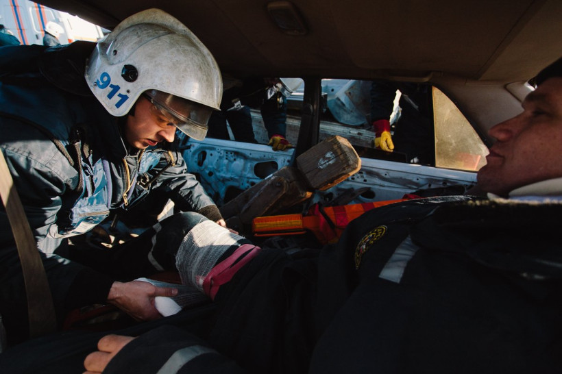 Спасатели тренировались на одном из благовещенских авторазборов. Владелец предоставил два разбитых автомобиля и позволил делать с ними все, что потребуется. По сценарию, лобовое столкновение машин произошло на затяжном повороте в районе села Волково. На место выехали две бригады – всего 11 человек личного состава. В аварии пострадали четыре человека. Из одного автомобиля людей вызволили без особых сложностей и доставили в больницу. Еще двое оказались зажаты в другой машине. Для их спасения использовали гидравлические кусачки, в итоге машину разрезали и пострадавших удалось вытащить из искореженного транспорта.