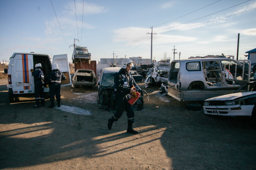 Сегодня на одном из благовещенских авторазборов развернули спасательную операцию. Две бригады амурского поисково-спасательного отряда тренировались вызволять людей из покореженных в ДТП автомобилей. С помощью двух разбитых машин смоделировали аварию с четырьмя пострадавшими — три человека и один деревянный манекен, которого, по сценарию, зажало при аварии. С помощью лома, гидравлических кусачек и дискореза пострадавших удалось спасти. За спецоперацией следил фотокорреспондент АП Сергей Лазовский.