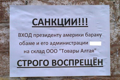 Тында присоединилась к Всероссийской шуточной акции «Обаме вход воспрещен». В буфете администрации Тындинского района появилось объявление: «Президенту США Б. Обаме и представителям Евросоюза пирожки не продаем!» Подобные санкции остроумные россияне вводят по всей стране — главе Соединенных Штатов запрещается вход в магазины, столовые, больницы и даже уборные. Ему не разрешено гладить некоторых собак, греться в подъездах и пить сок «Добрый».