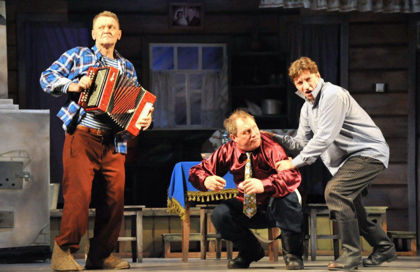 Спектакль поставлен по одноименной пьесе Степана Лобозерова, и это продолжение истории под названием «Семейный портрет с посторонним». Наверняка она знакома большинству зрителей и по театральным подмосткам (шел такой спектакль и на амурской сцене лет 15 назад), и по фильму «Именины». Герои «Семейного портрета» — обычные деревенские чудики, своеобразные, но симпатичные. Хитроватая и мудрая бабка, ее непутевый сын-выпивоха Тимофей, его жена Катерина, на которой дом держится, дочка Таня и ее жених Мишка. Такая «семейка Адамс» по‑русски — все на всех орут, но ради близких отдадут последнее.
