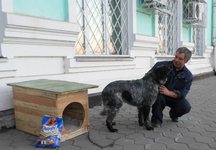 Сотрудники МП «ГСТК» забрали собаку, оставленную накануне вечером около здания администрации Благовещенска. Местный собачник, который занимался спасением животных во время наводнения, решил таким способом подвигнуть городские власти на соблюдение областного закона о животных.