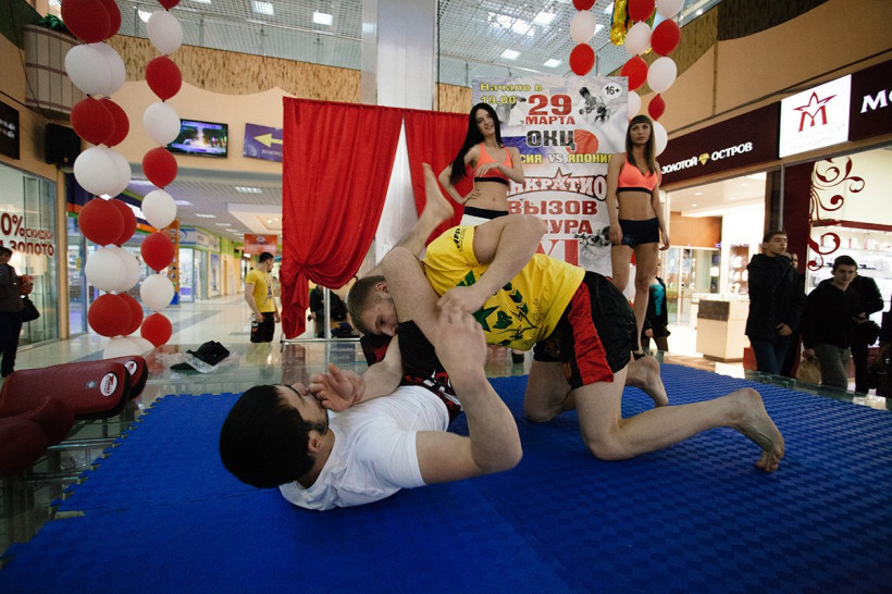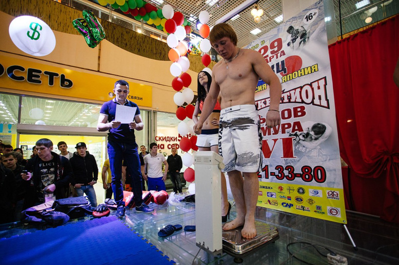Открытая тренировка по современному панкратиону прошла вчера на импровизированном ринге в благовещенском ТРЦ «Острова». Взвеситься и размяться на глазах у прохожих вышли десять амурских спортсменов. Сегодня в 19.00 в благовещенском Общественно-культурном центре им предстоит участвовать в традиционном турнире по смешанным единоборствам «Вызов Амура — 6». Спортсмены проведут десять поединков: семь рейтинговых и три супербоя. Соперники амурчан приедут из Москвы, Владивостока, Хабаровска, Южно-Сахалинска. Сегодня в город доставят и специальную клетку для подобных поединков. Приспособление прибудет из США, где его уже использовали для проведения боев по версии Bellator.