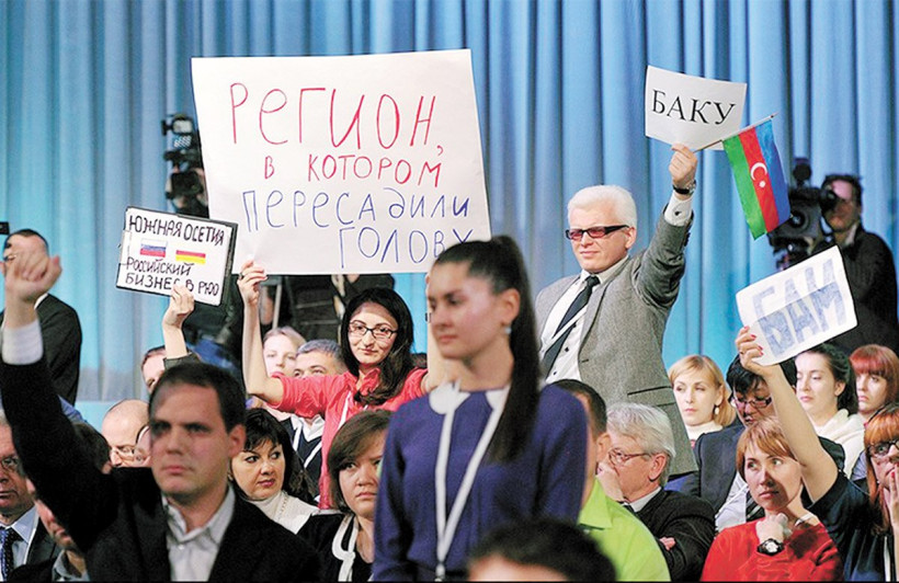 Вопрос прозвучал, поезд в итоге сохранили. Но самое интересное было после пресс-конференции. Многие телевизионные журналисты стали записывать стендапы прямо в зале. Проходя мимо одной из съемочных групп, я услышала, как девушка с умным видом говорит в камеру: «На пресс-конференции журналисты пытались привлечь внимание президента самыми разными способами. Некоторые даже писали необычные слова, например, БАМ». Надеюсь, зрители этого канала оценили высокий профессионализм журналистки.