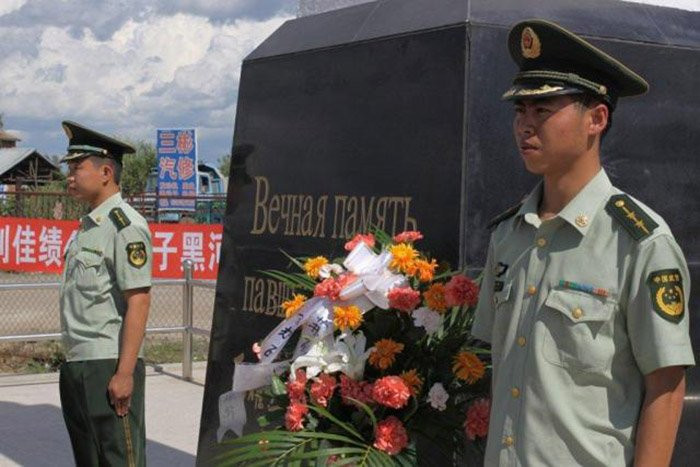 — Два китайских солдата Народной военной полиции, держа венки, прошли к могиле павших героев Красной Армии Советского Союза под песню «Возложение цветов», — сообщается на сайте правительства Амурской области. — Председатель постоянного комитета Собрания народных представителей, секретарь комитета КПК г. Хэйхэ Лю Ганн вместе с другими участниками церемонии возложили венки и живые цветы, трижды поклонились всем военнослужащим Красной армии, погибшим во имя мира во всем мире и освобождения северо-восточного региона Китая.