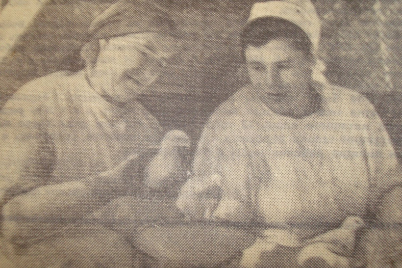 Пять лет назад ушла на заслуженный отдых знатная птичница Некрасовского совхоза Пелагея Фоминична Адраева. А недавно приходит к ней директор Н. П. Артюхов и говорит: «Выручи, Фоминична, прими цыплят. 12 тысяч привезли, а ухаживать некому». На следующий день Фоминична была уже на ферме. Сама утеплила потолок и оконные рамы, потребовала отремонтировать калориферы. Через полмесяца на помощь матери пришла дочь Прасковья. Теперь они вместе работают, вместе выращивают цыплят.