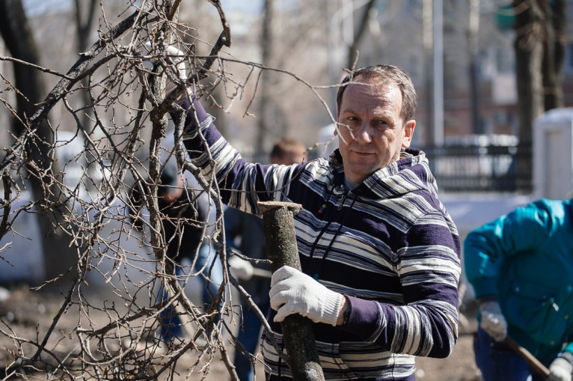 Сегодня, 11 апреля, представители трех управлений администрации совместно с и. о. главы Александром Козловым и двумя его заместителями навели порядок в сквере за больницей водников. На уборку администрация вышла после обращения местной жительницы Галины Ужастовой.
