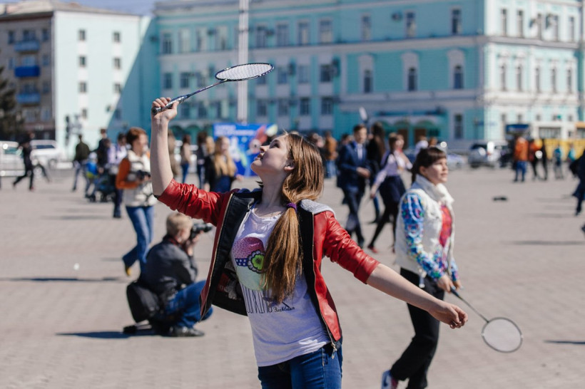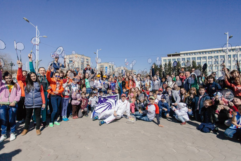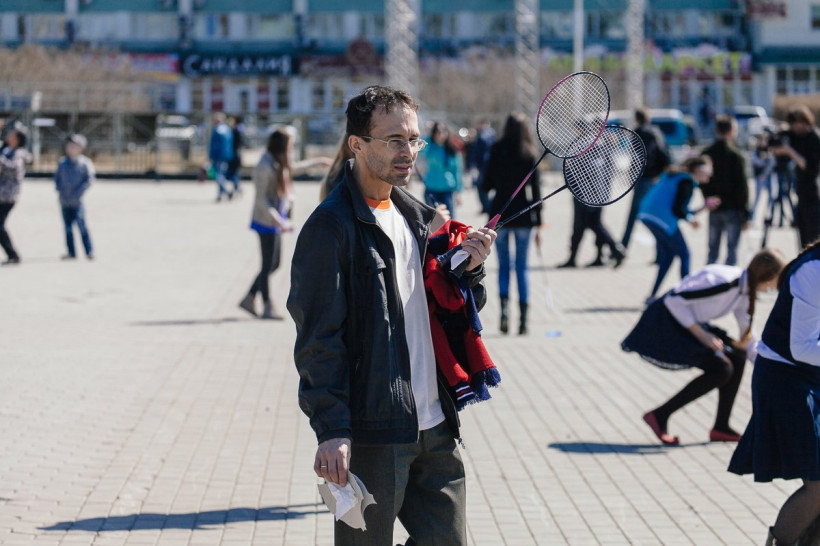 На площади Благовещенска сыграли в бадминтон и установили капсулу космического корабля