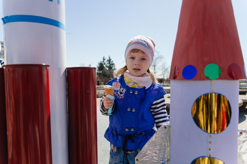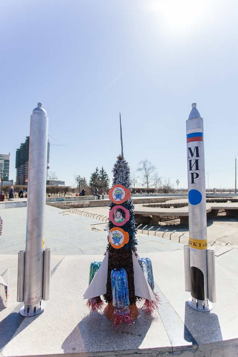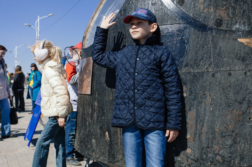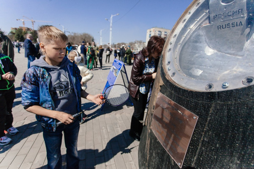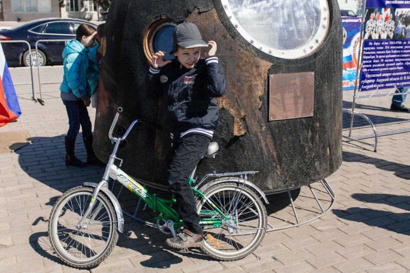 В День космонавтики, 12 апреля, жителям амурской столицы показали спускаемую капсулу космического корабля «Союз». Ее специально привезли из Углегорска и установили на центральной площади. Здесь же в полдень провели флешмоб «Амурская ракетка — 2014» — более 100 пар одновременно начали массовую игру в бадминтон. В Приамурье такая акция прошла впервые, помимо Благовещенска, ее организовали еще в 21 населенном пункте области. На космических мероприятиях этого дня побывал фотокорреспондент АП Сергей Лазовский.