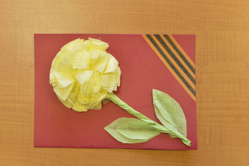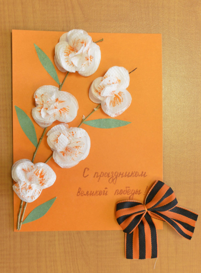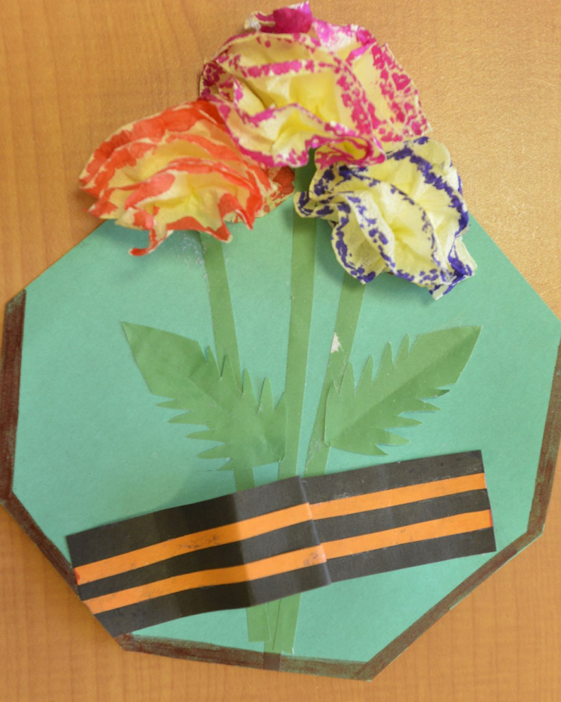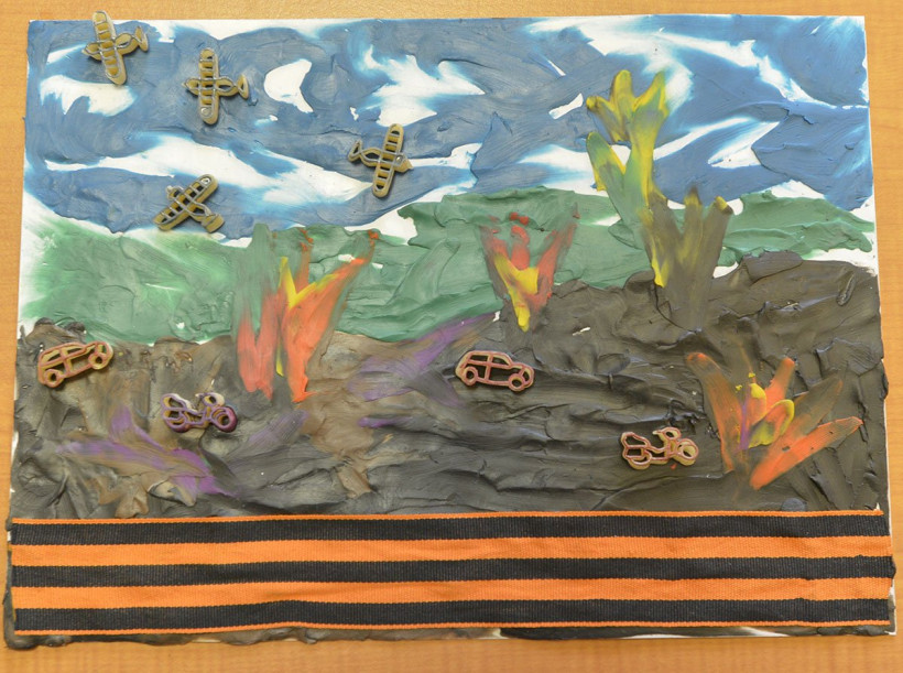 Ребята использовали в своих работах разные материалы — бумагу, салфетки, пластилин и даже макароны. Почти на всех открытках изображена или приклеена георгиевская лента. По словам воспитателей детского сада, дети в подготовительной группе уже знают, что такое война, знают, что Россия победила фашистскую Германию и что задача молодого поколения — не допустить в будущем войны.