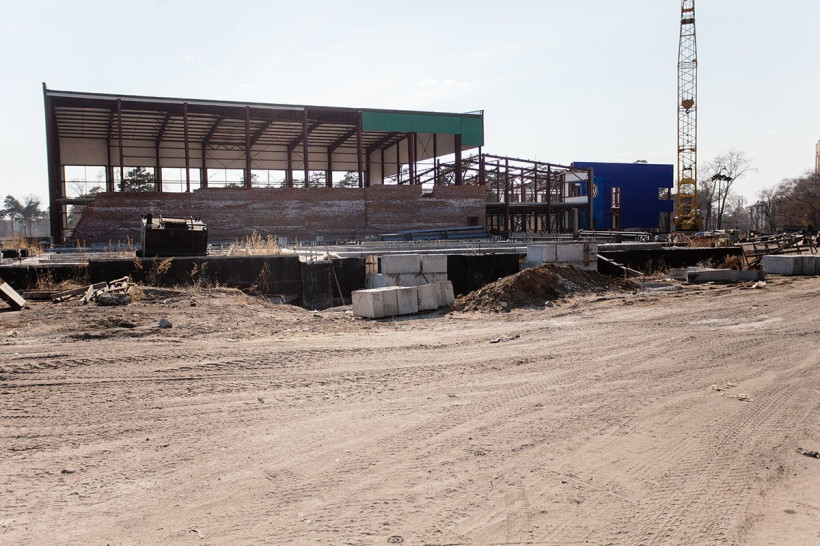 На сегодня на 100 процентов готовы секции А и Б, продолжаются работы на секциях В и Г. На данный момент приобретена половина от необходимого для здания количества сэндвич-панелей, завезено оборудование для вентиляции и водоподготовки и водоочистки 25-метрового плавательного бассейна и детского бассейна размером 10 х 6 метров.