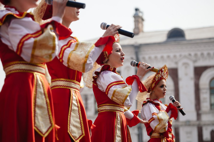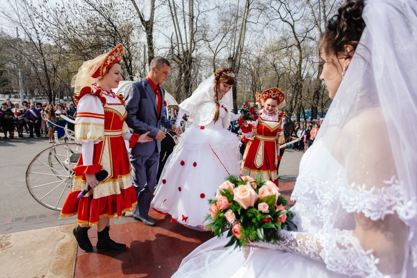 На Красную горку в Благовещенске провели свадебный обряд в традициях древней Руси, три пары поженились под аккомпанемент колокольного звона и народных песен. Молодые катались в карете, водили хороводы и клялись в любви перед славянскими богами. Чтобы узы были крепкими, родители связали их руки рушниками и хором благословили молодые семьи. На празднике сразу трех пар новобрачных побывал фотокорреспондент АП Сергей Лазовский.