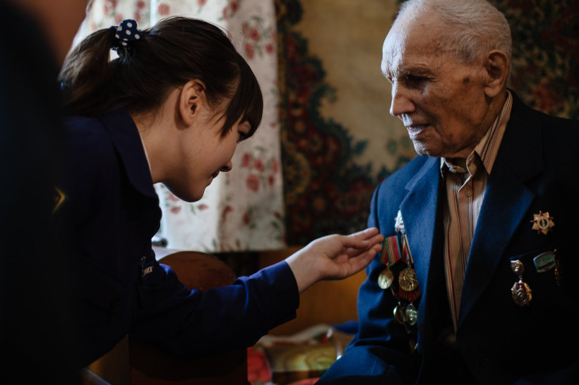 В подарок Ивану Сергеевичу я привезла открытку, которую сделали воспитанники детского сада Благовещенска. Он долго не выпускал ее из рук — маленькую ниточку, связывающую через годы разные поколения. А на мои пожелания здоровья ветеран рассмеялся: какое, мол, здоровье, когда тебе сто лет. А я и представить не могу, каково нести такой груз лет и памяти на своих плечах. Только богатырю такое под силу.