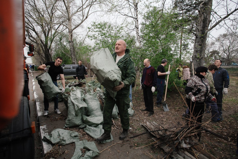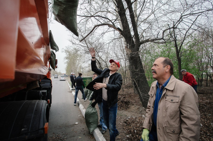 Около 400 сотрудников амурского правительства вышли на субботник. За пару-тройку часов чиновники почистили от мусора отдаленный район Благовещенска — участок улицы Чайковского в районе бывшей Спичфабрики. Чиновникам досталась территория протяженностью 8 километров, которую для удобства поделили на зоны. За каждым участком закрепили отдельные министерства. Благодяря усилиям слуг народа самый загрязненый район стал чище на 20 грузовиков мусора. Как правительственные мужи управляются с граблями, наблюдал фотокорреспондент АП Сергей Лазовский.