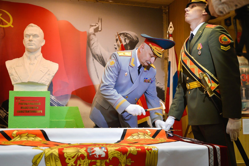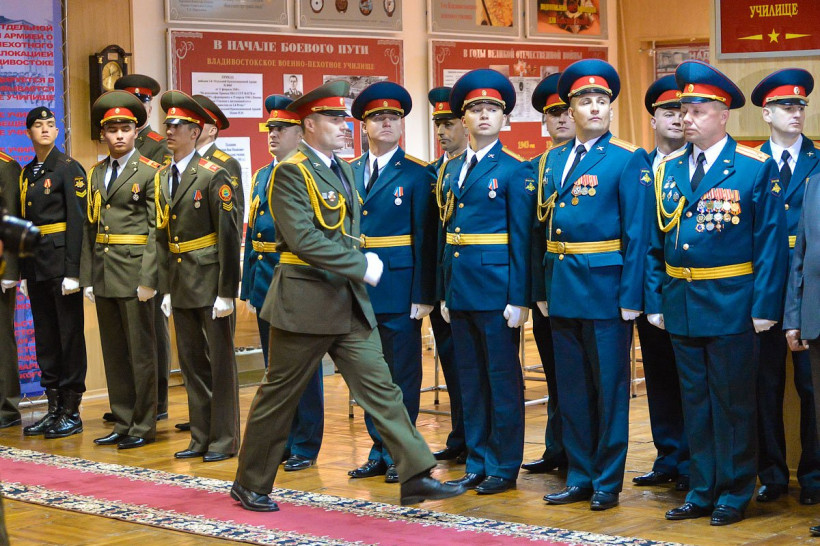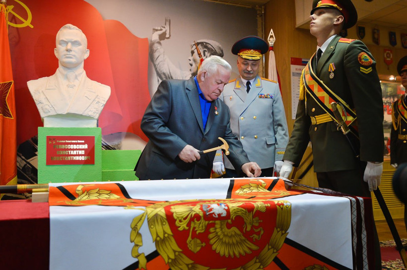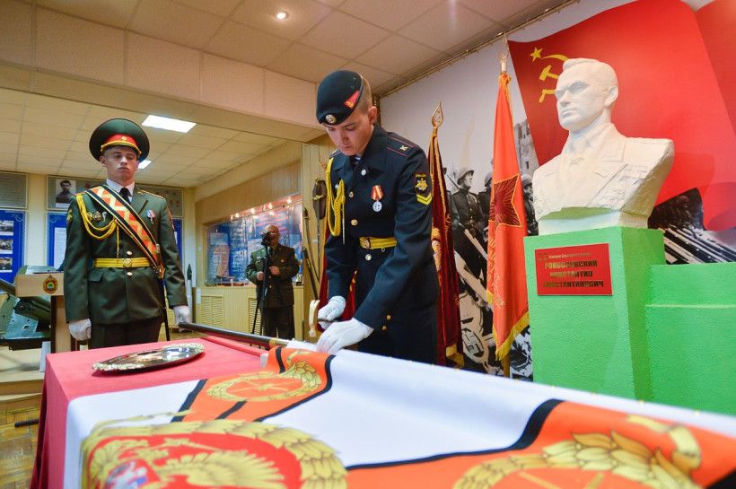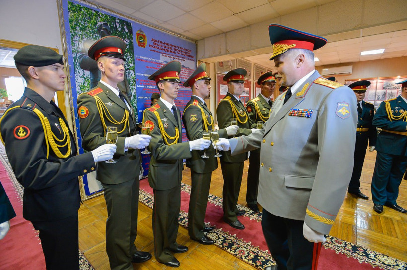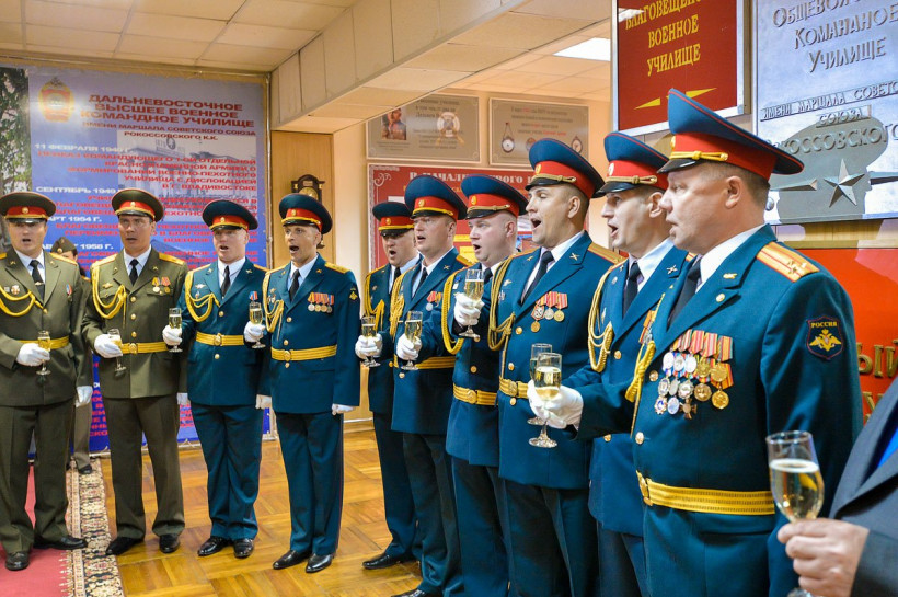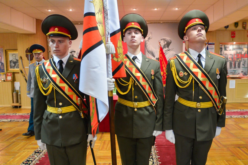 Замена знамен с советской символикой началась в 2006 году в соответствии с президентским указом. Старое знамя останется в ДВВКУ, как историческая память, а само училище вернет себе историческое название. С 1 сентября 2014 года оно снова будет называться ДВОКУ — Дальневосточное высшее общевойсковое командное училище им. маршала Советского Союза К. К. Рокоссовского. Фоторепортаж Андрея Оглезнева.