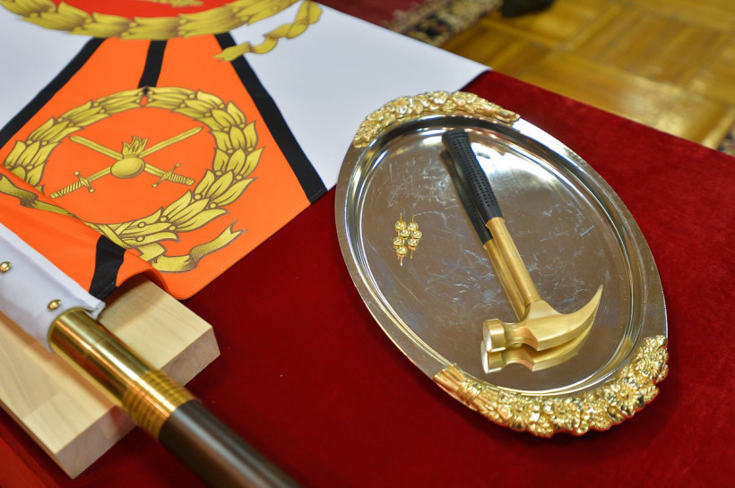 Дальневосточное высшее военное командное училище получило знамя нового образца. Сегодня, 4 мая, в ДВВКУ прошла торжественная церемония крепления полотнища к древку. 19 гвоздей вбили в древко 19 военнослужащих — от рядового до генерала. «Завтра состоится торжественное вручение знамени, — рассказал АП замначальника ДВВКУ по работе с личным составом полковник Федор Бурков. — Для этого в Благовещенск прибудет исполняющий обязанности Главнокомандующего сухопутными войсками России генерал-лейтенант Сергей Истраков».