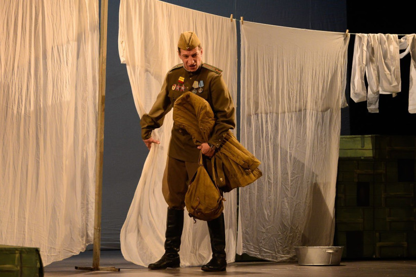 Амурский областной театр драмы специально ко Дню Победы поставил новый спектакль про войну «Не покидай меня». Это дебютная режиссерская работа актера театра Роберта Салахова. Сегодня вечером на премьеру соберутся 300 ветеранов из 11 городов и районов области. Со сцены их поздравит губернатор Олег Кожемяко. Спектакль уже начали показывать благовещенским школьникам. Чтобы просветить молодежь, которая не так много знает о Второй мировой войне, актеры будут ездить со спектаклем по всей области в течение всего года, рассказала директор драмтеатра Татьяна Бедина. На премьере побывал фотокорреспондент АП Андрей Оглезнев.