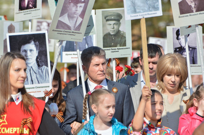 Многочисленные ветераны и простые горожане собрались сегодня, в День Победы, в центре амурской столицы. 9 мая в этом году выдалось теплым деньком. Утром по главной улице Благовещенска прошествовала колонна «Бессмертного полка», а в ее рядах — губернатор Олег Кожемяко. На площади Победы прошло возложение цветов к памятнику героям-амурцам, погибшим в годы Великой Отечественной. Сотни зрителей завороженно наблюдали за военным парадом. Торжественные мероприятия плавно перетекли в народные гуляния. Свой вклад в создание праздничного настроения внесла и «Амурская правда». Как благовещенцы празднуют 9 мая, увидел фотокорреспондент Андрей Оглезнев.