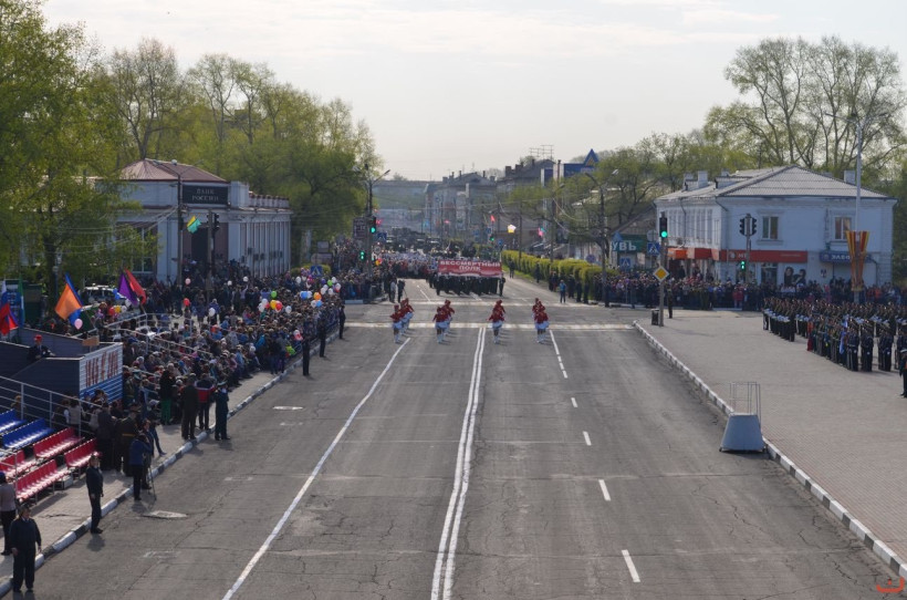 Военный парад соединений и воинских частей Белогорского гарнизона принял командующий 35-й Краснознаменной общевойсковой армией генерал-лейтенант Сергей Соломатин. По традиции парад открыла рота барабанщиков. По улице имени Кирова промаршировали около тысячи военных, а также проехало порядка трех десятков военной техники. В том числе самоходные противотанковые ракетные комплексы «Конкурс», расчеты самоходных противотанковых комплексов «Штурм-С», миллиметровые противотанковые пушки МТ-12 «Рапира», современные наследники легендарной «Катюши» — 122-миллиметровые реактивные системы залпового огня «Град»