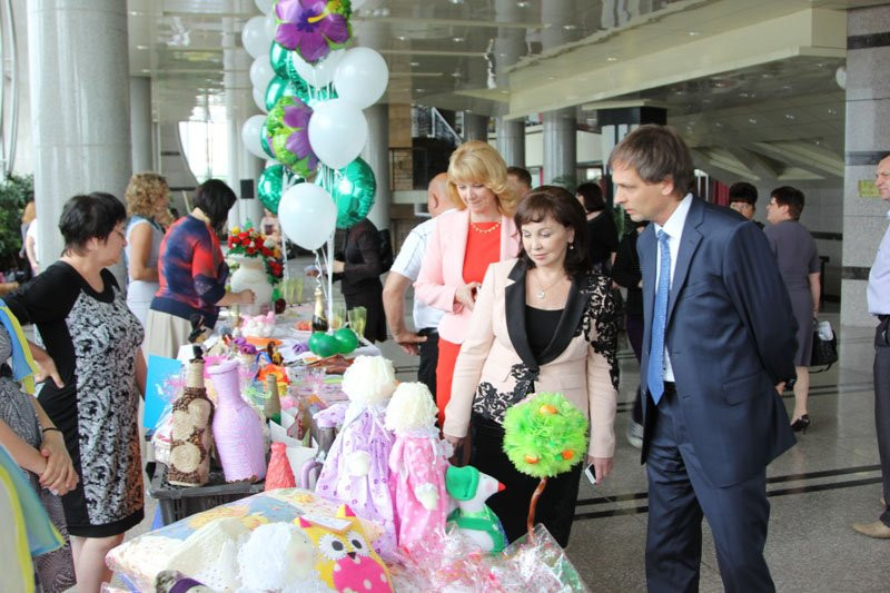 Чуть позже на втором этаже здания открылась выставка работ народных умельцев. Обереги на счастье, мыло, свечи и украшения ручной работы, изделия их шерсти, бисера, букеты из конфет, торты в виде футбольного поля, цветочной вазы и многое другое представляли предприниматели из Белогорска, Свободного, Углегорска. Мастерицы областного центра объединились в «Аллею мастеров». Участники выставки делились с гостями и коллегами по цеху своими идеями и планами. Одна из предпринимательниц организовала мастер-класс по валянию из шерсти. Сувениры и кондитерские изделия от амурских мастеров мог приобрести любой желающий. Интересно, что работы земляков представили музыкальные коллективы, приехавшие на форум из районов Приамурья.
